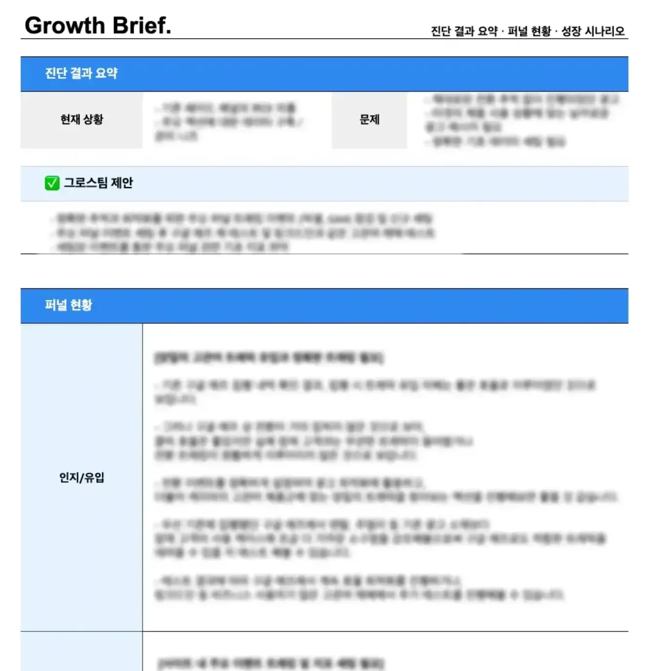 하지만 현실적으로 수백억 단위의 충분히 큰 매출이 발생하지 않는 회사에서 그로스PM이나 데이터 엔지니어, 마케팅테크 전문가를 내재화하는 것은 어렵습니다. 따라서 높은 전문성을 가진 그로스팀을 외부에 두고 구독이라는 방식을 통해 우리 제품과 서비스를 개선하는 ‘세컨팀’ 운용 방식이 가장 실용적이며 현실적인 성장 전략으로 주목받고 있습니다.